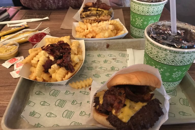Seamos sinceros, Estados Unidos tiene muchos puntos fuertes pero la gastronomía... ni fú ni fa... Pero se puede llevar bien. Para que tu cartera no sufra, recomendamos hacer al día una comida en restaurante (ahora os recomendaré 2 en los que hemos estado y para mi son un 10) y otra de las comidas en algún puesto callejero (perrito caliente, kebab...) o cadena de comida rápida (Shake Shak y Fives Guys son nuestras favoritas). De esta manera habrá un equilibrio en los gastos de comida ya que comer en un restaurante supone una media de 70/80 dólares la pareja.